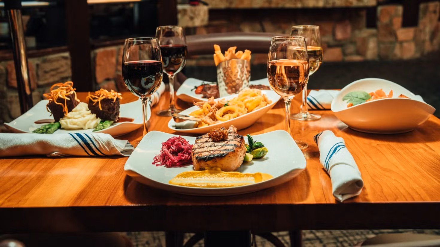 Features a diverse menu that caters to families, ranging from fresh salads to hearty steaks.